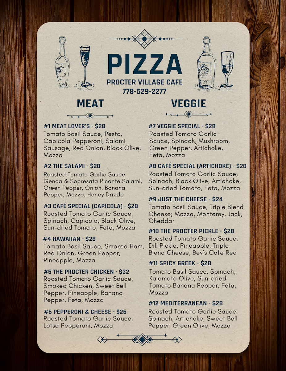 Stepping into Procter Village Cafe is like being welcomed into a beloved friend’s home. The inviting atmosphere is enriched by its quaint house setting, making it a perfect spot to relax and unwind, whether you choose to settle indoors amid charming decor or enjoy the scenic outdoor seating. The beautiful surroundings provide an ideal backdrop for your coffee break or lunch date.